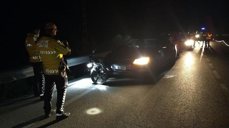 Kaza, D-100 Karayolu üzerinde meydana geldi. Edinilen bilgiye göre, İstanbul istikametinden Samsun istikametine gitmekte olan Özcan U. yönetimindeki 59 B 0981 plakalı Skoda marka otomobil aynı istikamette seyretmekte olan sürücüsü ve plakası tespit edilemeyen Secaaddin Çolak (17) ve Selami Durna’nın ( 17) üzerinde bulunduğu motosiklete arkadan çarptı. Çarpmanın etkisiyle motosiklet otomobile saplandı. Kazanın ardından motosikletten düşerek yaklaşık 30 metre sürüklenen Secaaddin Çolak olay yerinde hayatını kaybederken, Selami Durna ise kaza yerinden 100 metre ileride bariyerlerin arkasında yol kenarına savruldu. Çevreden gören vatandaşların ihbarı ile olay yerine intikal eden polis ve jandarma ekipleri D-100 karayolunda trafik akışını durdururken, sağlık ekipleri ise yaralı gence olay yerinde ilk müdahaleyi yaptı. Osmancık Devlet Hastanesine kaldırılan Durna, buradan Hitit Üniversitesi Erol Olçok Eğitim ve Araştırma Hastanesine sevk edildi. Kazada hayatını kaybeden Secaaddin Çolak’ın cenazesi ise Cumhuriyet Savcısının olay yerinde yaptığı incelemelerin ardından Osmancık Devlet Hastanesi morguna kaldırıldı. Kazayla ilgili soruşturmanın sürdürüldüğü öğrenildi. (İHA)