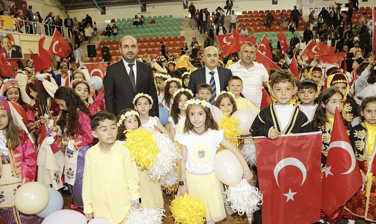 Sabah saatlerinde Atatürk Anıtı’na çelenk sunumuyla başlayan kutlama programı Atatürk Spor Salonu’nda devam etti. Öğrencilerin hazırladığı gösteriler büyük alkış toplarken, veliler de çocukların bayram sevincine ortak oldu. Ellerinde Türk bayraklarıyla salonu dolduran vatandaşlar, 23 Nisan coşkusunu doyasıya yaşadı. Programda Vali Zülkif Dağlı ve Belediye Başkanı Halil İbrahim Aşgın’ın çocukların ve vatandaşların bayramını kutladı.
