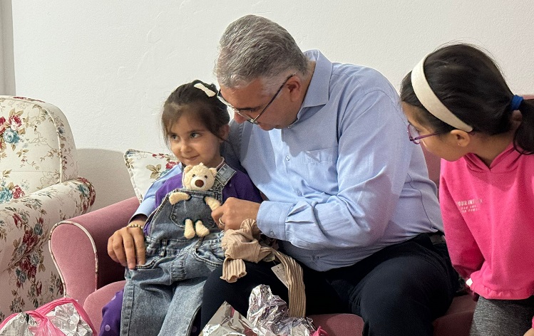 Bu arada; ailenin küçük çocukları Aslıhan ve Asya’ya hediyeler götüren Yusuf Ahlatcı, “Yavrularımızın gözlerindeki parlamalar geleceğimize ışık tutuyor. Çocuklarımıza layık oldukları güzel bir gelecek sunmak için var gücümüzle çalışmaya devam edeceğiz” ifadelerini kullandı.