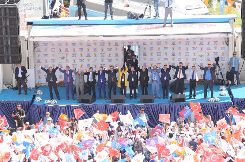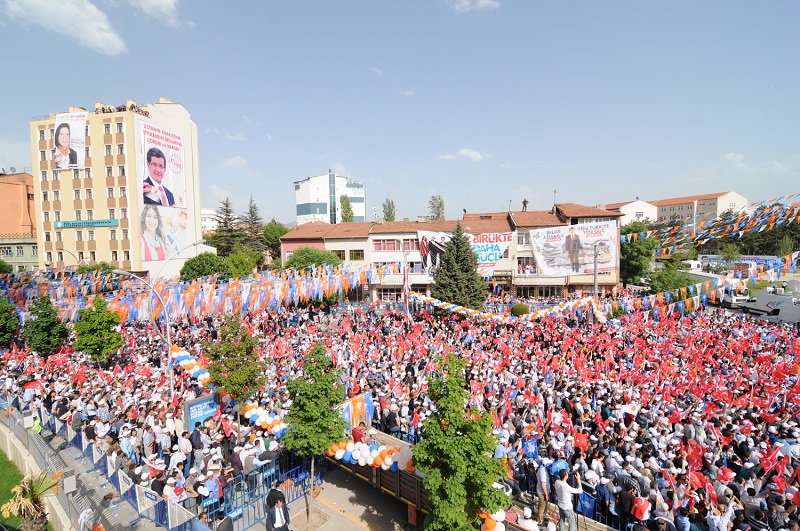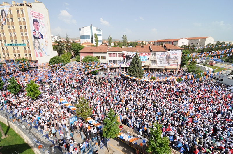 Son Güncelleme: 20 Mayıs 2015 21:39 Başbakan Ahmet Davutoğlu seçim çalışmaları kapsamında Çorum’a geldi. Eşi Sare Davutoğlu ile birlikte Abide Meydanı’ndaki kalabalığı selamlayan Başbakan Ahmet Davutoğlu, alanı hınca hınç dolduran kalabalığa hitap etti. Milletvekili adayları Salim Uslu, Cahit Bağcı, Lütfiye İlksen Ceritoğlu Kurt ve Ahmet Sami Ceylan, Belediye Başkanı Muzaffer Külcü ve AK Parti İl Başkanı Av. Rumi Bekiroğlu ile birlikte halkı selamlayan Davutoğlu, Çorumlulardan 4 milletvekilini de meclise göndermelerini istedi.