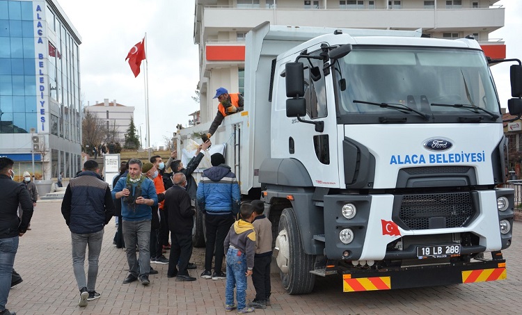 Yeşil bir Alaca için çalışmalarını sürdüren Alaca Belediyesi, 2500 adet karaçam fidanını vatandaşlara dağıttı. Cumhuriyet Meydanı’nda Cuma namazı sonrasında vatandaşlara dağıtımı gerçekleştirilen fidanlar, memnuniyetle karşılandı. Konuyla ilgili açıklama yapan Belediye Başkanı Halil İbrahim Şaltu, “Özellikle pandemi döneminde bir kere daha öğrendik ki temiz bir hava solumak kadar güzel bir nimet yok. İnşallah bol oksijenli günlere kavuşacağız. Bilindiği gibi temiz hava için ormana ihtiyaç var. Soluduğumuz her bir nefeste ormanlara çok şey borçluyuz. Dolayısıyla orman ve ağaç sevgisini çocuklarımıza aşılamamız gerekmektedir. Mevcut ormanlarımızı korumalı ve orman sayısını da artırmalıyız. Gelecekte daha iyi bir Türkiye daha iyi bir Dünya arzuluyoruz.”