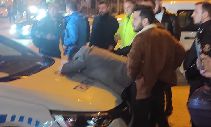 Vatandaşlar duruma tepki gösterirken ayakta duramayan sürücü polis aracının kaputuna yattı. Yaralı iki kadın olay yerine çağrılan ambulanslarla hastaneye kaldırılarak tedavi altına alındı.