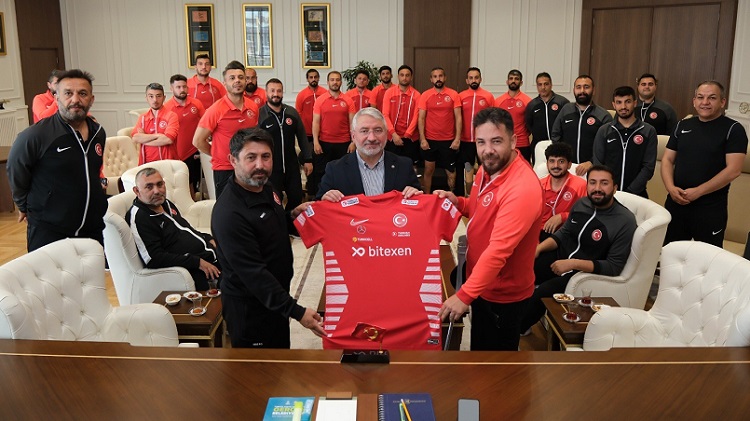 Teknik Direktör İsmail Temiz ve sporcularda kendilerine verdiği destek dolayı Belediye Başkanı Dr. Halil İbrahim Aşgın’a teşekkür ederek milli takım forması hediye etti.