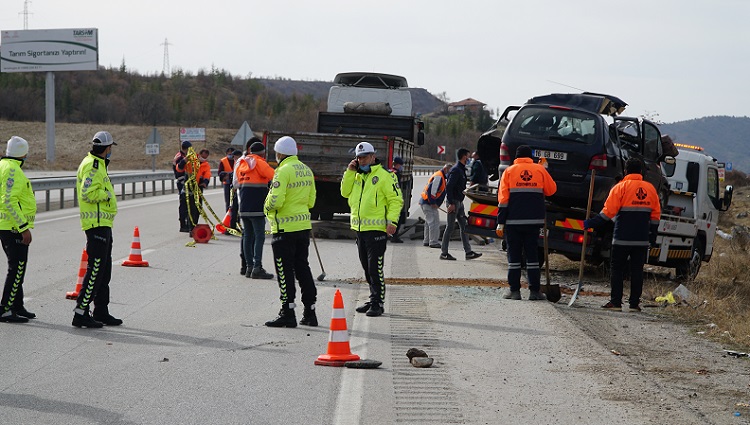 Çorum’un Osmancık ilçesinde bir otomobilin TIR’a çarpması sonucu meydana gelen kazada 2 kişi öldü, 3 yaşındaki çocuk yaralandı. Kaza Gece Köyü mevkiinde meydana geldi. Edinilen bilgiye göre Adem Bakır’ın kullandığı 16 GB 699 plakalı otomobil önünde seyreden V. K. yönetimindeki maden yüklü 74 BZ 648 plakalı TIR’a arkadan çarptı. Çarpışmanın etkisi ile dorsenin altına girerek hurdaya dönen otomobilin, sıkışan sürücüsü Adem Bakır ile oğlu Mahmut Bakır ağır yaralandı, anne Şahide Bakır ise olay yerinde yaşamını yitirdi.Otomobilden çıkartılan yaralı sürücü ve oğlu olay yerine gelen 112 ekibinin ilk müdahalesinin ardından Osmancık Devlet Hastanesine kaldırılarak tedavi altına alınırken, ağır yaralı Adem Bakır tüm müdahalelere rağmen kurtarılamadı. Kazayla ilgili soruşturma sürüyor.