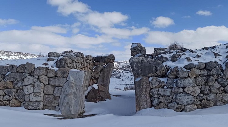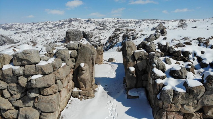 Ziyaretçilerine tarihte yolculuk yaptıran ve her mevsim ayrı güzellik sunan Çorum’un Boğazkale ilçesinde bulunan Hattuşa Antik Kenti, kar yağışının ardından ayrı bir güzelliğe büründü. Karla kaplı antik kentte kartpostallık manzaralar oluştu. Çorum’a gelen yerli ve yabancı turistlerin ilk durağı olan Hattuşa Antik Kenti’ni tarih tutkunlarının yanı fotoğraf tutkunları tercih ediyor. Anadolu’nun ilk medeniyetlerinden Hatti ve Hititlerin kültürel mirasına ev sahipliği yapan Çorum’un Boğazkale ilçesindeki antik kent, UNESCO “Dünya Kültür Mirası” ve “Dünya Belleği” listelerindeki tek antik şehir unvanıyla Türkiye’nin göz bebeği turizm mekanları arasında yer alıyor.