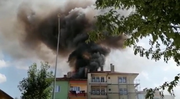 Çorum’da bir apartmanın çatısında başlayan yangına itfaiye ekipleri müdahale etti. Yangın Gülabibey Mahallesi Kafkasevler’de bulunan bir apartmanda meydana geldi. Binanın çatısından yükselen dumanları fark eden vatandaşların ihbarı ile olay yerine çok sayıda itfaiye ve sağlık ekibi sevk edildi. Binada yaşayan vatandaşların hızlı bir şekilde tahliyesinin ardından yangına müdahale edilmeye başlandı. Çıkış nedeni henüz belirlenemeyen ve alevlerin tüm çatıyı kapladığı yangına kısa süre içinde olay yerine gelen Çorum Belediyesi İtfaiye ekiplerinin müdahalesi sürüyor.