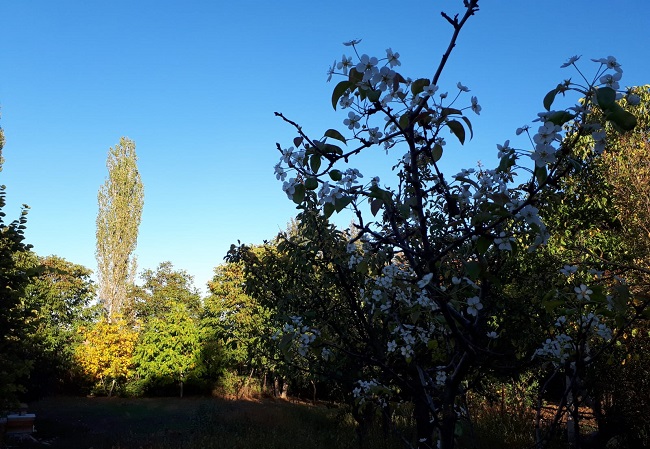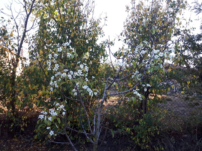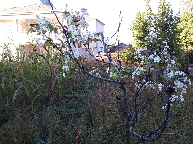 Son Güncelleme: 10 Ekim 2018 16:20 Çorum’da bir armut ağacı Ekim ayının ortasında çiçek açtı. Mecitözü İlçesi’nin Körücek Köyü’nde Hikmet Yavuz’a ait bahçede bir armut ağacının çiçek açması, şaşkınlıkla karşılandı. Sonbahar mevsiminde olmamıza rağmen bazı meyve ağaçlarının çiçek açtığına tanık oluyoruz. Hava sıcaklıklarının birdenbire düşmesi, sonra da tekrar sıcak hava akımının gelmesi meyve ağaçlarını da şaşırttı. Körücek Köyü Yardımlaşma ve Dayanışma Derneği Başkanı Hikmet Yavuz, geçtiğimiz hafta sonu köyüne gittiğinde bahçesinde bulunan armut ağacının çiçek açtığını görünce durumu şaşkınlıkla karşıladı. Mısırların yanında armut ağacının çiçek açmasını tebessümle karşılayan Hikmet Yavuz, “Bir yanda armut ağaçlarında meyve dururken, bir yanda da çiçek açması gerçekten ilginç. Aynı bahçe içerisinde hem meyveyi, hem de çiçeğini görmek şaşırtıcı bir durum” diye konuştu.
