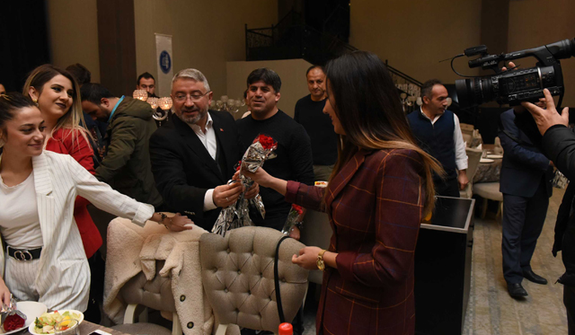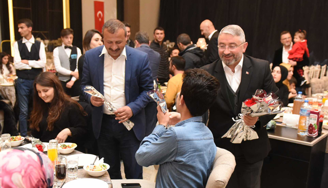 Son Güncelleme: 26 Kasım 2019 20:47 Belediye Başkanı Dr. Halil İbrahim Aşgın Çorum Belediyesi bünyesinde görev alan öğreticilerle öğretmenler günü nedeniyle yemekte bir araya geldi. Program öncesinde tüm öğretmenlere karanfil dağıtan Belediye Başkanı Dr. Halil İbrahim Aşgın tüm öğretmenlerin öğretmenler gününü kutladı. Başkan Aşgın, “iyi bir gelecek bırakmanın öğretmenlerin ortaya çıkaracağı eserlerle olacaktır. Ülke olarak gelişmek için başarılı nesiller yetiştirilmesi gerekmektedir. Öğretmenlik kutsal bir meslek. Peygamberler mesleği. Biz sizlerle gurur duyuyoruz. Zaman zaman Gençlik Merkezlerimizi, Kadın Kültür Merkezlerimizi ziyaret ediyorum. Oralara gittiğimde samimiyeti görüyorum. Öğretmenlerimiz görevinin bilincinde çalışıyor. Öğretmenlerimiz derslerin yanı sıra bizi biz yapan değerleri de öğretiyor. Sevmeyi, şefkati, merhameti öğretiyor. Biz her zaman öğretmenlerimizin yanındayız. Öğretmenlerimizin de problemlerini biliyoruz. Gücümüzün yettiğince öğretmenlerimizin problemlerini çözmek için uğraşıyoruz. Sizlerin yaptığı iş ülkemizin geleceği açısında çok önemli. Biz 10-15 yıl sonra nasıl bir ülke istiyoruz. Bu soru önemli bu soruyu kendimize sormamız lazım. Bu nesil size emanet. Nasıl bir ülke hayal ediyorsak beraber başaracağız. Ben madden ve manen gelişmiş bir ülke hayal ediyorum. Erdemi, ahlakı, dürüstlüğü, insana sevgiyi saygıyı, ırk ayırmadan, cinsiyet ayırmadan sırf insan olduğu için saygı öğretmemiz lazım. Hem de bilimle sanatla en üst düzeyde öğrenmiş bir nesil yetiştirmemiz lazım. Atatürk’ün dediği gibi yeni nesil sizin eseriniz olacak. Bunu beraber başarmak zorundayız. Yeryüzündeki tüm mazlumlar için ülke olarak bunu başarmak zorundayız. Hedefimiz net olmalı ve o hedefe emin adımlarla yürümeliyiz. Tekrar tüm öğretmenlerimizin günü kutluyorum” dedi.