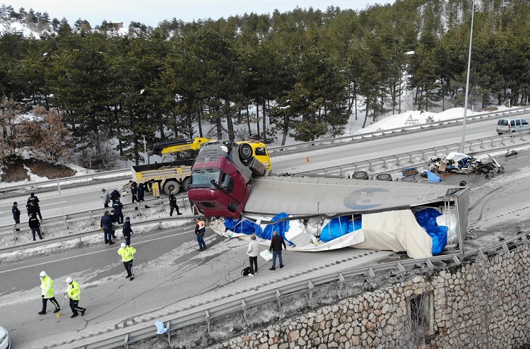 Kaza, Çorum-Samsun karayolunda meydana geldi. Edinilen bilgilere göre, Sıklık mevkiinde rampaya tırmanan Gürcistan plakalı Murat U. idaresindeki tır arızalandı. Bir süre sonra hızla geri geri gitmeye başlayan tır, Yaşar C. yönetimindeki 66 LP 131 plakalı otomobile çarptı. Kazada otomobilde bulunan Kemal Çalışkan olay yerinde hayatını kaybederken, Onur E. ve sürücü ağır yaralandı.