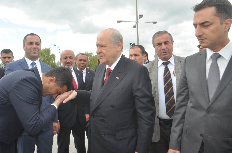 MHP Genel Başkanı Devlet Bahçeli, seçim çalışmaları kapsamında Çorum’a geldi. Abide meydanında halka hitap eden MHP Lideri, seçimlerde tüm seçmenlerden MHP’ye destek olmalarını istedi. Başkanlık sistemi hakkında eleştirilerde bulunan Bahçeli, “Erdoğan’a, Cumhurbaşkanlığı yetmiyor. Israrla başkanlık sistemini istemektedir. Sanki her mesele bitmiş, halledilmişte geri başkanlık sistemi kalmıştır. Başkanlık diktatörlük kapısıdır. Başkanlık istikrarsızlık kaynağıdır. Başkanlık bölünmenin karar mercidir. Erdoğan ömür boyu kendisini garanti aklına almak için başkanlık arayışındadır. 17-25 Aralık yolsuzluk operasyonundan yakayı kurtarmak için Türkiye’ye komplo kurmaktadır. Hakim ve savcılar hırsızlar tarafından meslekler tarafından ihraç ediliyor. Polisler rüşvetçiler tarafından hapse atılmaktadır. Tam bir hukuk cinayeti tam bir hukuk cinayeti yaşanıyor. Adalet boğazlanmakta, vicdan katledilmekte. Erdoğan Türkiye’nin tarihi ve kültürel birasını zaafa uğrattı. Kaybeden Türkiye, kazanan Erdoğan ve çevresidir. Anayasa’da tarafsız olması gereken cumhurbaşkanı sanal açılış törenleri ve devletin imkanlarıyla korsan ve paralel miting yapar mı. Yine anayasaya göre devletin başı olan cumhurbaşkanı bir partinin fili eş başkanı gibi hareket eder mi? Türkiye cumhuriyetinin ve milletinin birliğini teslim eden cumhurbaşkanı muhalefet partisiyle kavgaya tutuşup iktidar partisini kollayabilir mi? Asgari ücreti bin 440 yapacağız diyoruz. Kuru sıkı atıyorlar diyor. İstihdam düşer diyerek bizi eleştiriyor. Erdoğan ve Davutoğlu sizlerin rahata ulaşmasını istemiyor. Davutoğlu’nun cevaplaması gereken ne varsa Erdoğan devreye girerek cevaplıyor. Böyle bir cumhurbaşkanı olmadı. Böyle bir cumhurbaşkanı ne görüldü. Erdoğan’ı tanıyoruz. Kalitesini biliyoruz. Erdoğan’ın AK Parti’ye 400 milletvekili istemesi suçtur. Cumhuriyeti yıkmak uğruna başkanlık sistemini istemesi suçtur. PKK, HDP İmralı canisiyle birlikte olması suçtur. Tarafsızlıkla ilgili ettiği yemini çiğnemesi suçtur. Korumakla ilgili yükümlükle olmakla görevli olduğu devletin dinamikleriyle oynaması suçtur. Erdoğan cumhurbaşkanı makamında defalarca suç işledi. Cumhurbaşkanının ihanetten başka suçu yoktur demiştim. Bu konuda anayasayı referans gösterdi. Referans gösterdiğin seni kurtaramayacak. Anayasa senin vatana ihanet etiğini çok açık belgeleyecek. Türk milletinin sana verdiği yetkili kullanmanın nedeni karşılıksız kalmayacak. Hırsıza, arsıza, namussuza, yağmacıya, soyguncuya israfa karşı bizimle yürü Çorum” diye konuştu.