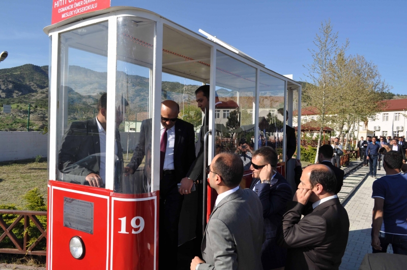 Bilim, Sanayi ve Teknoloji Bakanımız Fikri Işık, Yrd. Doç. Dr. Bilgehan Tozlu danışmanlığında 9 öğrenci tarafından yapılan “Güneş Enerjili Tramvay Projesi” Hititray’ı incelemek üzere Osmancık Ömer Derindere Meslek Yüksekokulumuzu ziyaret etti.