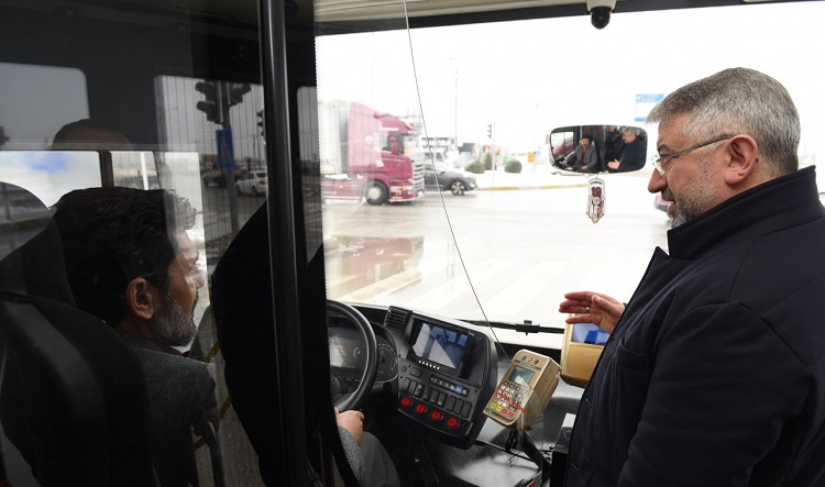 Otobüs güzergâhındaki karla mücadele çalışmalarını denetledi