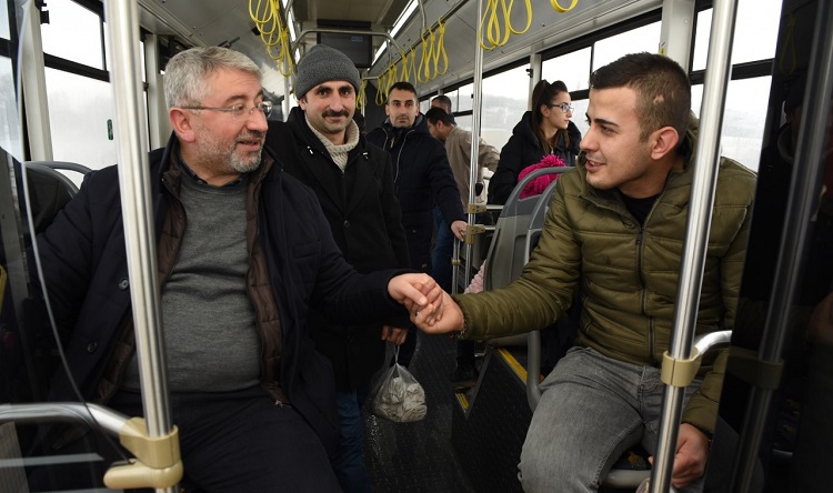 Son Güncelleme: 11 Şubat 2020 12:30 Kar yağışı sonrası otobüs seferlerinin durumunu ve halk otobüslerini tercih eden vatandaşların sorunlarını öğrenmek amacıyla merkez otobüs durağına giden Başkan Aşgın, burada Akkent otobüsüne binerek vatandaşlarla sohbet etti. Toplu taşımayı kullanan vatandaşların görüşlerini dinleyen Başkan Aşgın, zaman zaman toplu ulaşımla alakalı eleştiri ve şikayetlerin geldiğini ancak bunlara en kısa sürede müdahale etmeye gayret ettiklerini söyledi. Toplu taşımın kendileri için hassas oldukları konulardan biri olduğunu dile getiren Başkan Aşgın, “Toplu ulaşımla alakalı ciddi kararlar aldık ve yenilikler yaptık. Otobüs güzergâhları konusunda çok fazla şikayet alıyorduk. Bu konuda muhtarlarımızdan, Ulaş AŞ. yöneticilerinden ve Belediyemiz çalışanlarından oluşan bir heyetle istişareler neticesinde otobüs hatlarının güzergahları ve hat sayılarında değişiklikler yaptık. Şikâyetleri en aza indirdik” dedi.