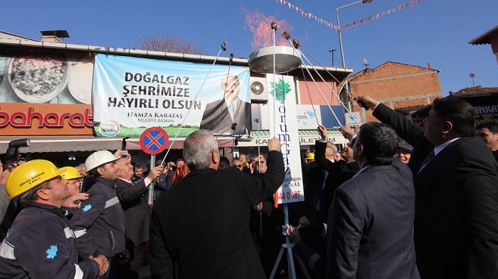 Başkan Karataş ilk yıl 14 mahalleye doğalgaz verildiğini belirterek “Şu ana kadar bağlantı hatları ile birlikte toplam 90 kilometre civarında doğalgaz alt yapısı yapıldı. İlçemizin 14 mahallesinde doğalgaz kullanılmaya başlandı. Yalnızca şehir merkezinden uzak olan dört mahallemizde doğalgaz yok. Önümüzdeki süreçte bu hizmet oralara da ulaşacaktır.” diye konuştu.