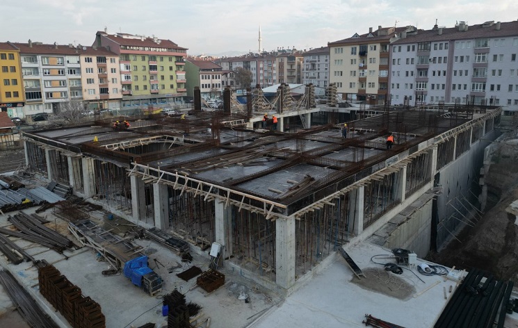 İhaleyi alarak inşaat çalışmalarını yürüten yüklenici firmanın yükümlülüklerini yerine getirmediği gerekçesiyle iş akdini feshettiklerini belirten Belediye Başkanı Dr. Halil İbrahim Aşgın “Biz bu projeyi 2022 yılında tamamlamayı hedeflemiştik. Ancak yüklenici firmadan kaynaklı sorunlar nedeniyle süreç biraz uzadı. Önceki firma yükümlülüklerini yerine getirmediği için iş akdini feshettik. Zaman kaybı yaşamamak için çok hızlı bir şekilde buranın koruma ihalesini gerçekleştirdik. 4 Ocak’ta da yeni firmaya yer teslimini yaptık. Şu anda çalışmalar hummalı bir şekilde devam ediyor. Yarım kalan işler tamamlanarak bu hafta içerisinde kısmen beton dökeceğiz. Üst tabliyenin kalan kısmını da önümüzdeki hafta dökmüş olacağız. Ardından, kubbelerin olduğu bölüm ve yalıtımlarla da ilgili çalışmalar tamamlanacak. 135 günlük zaman zarfında normal ihale aşamasına getirecek. Hedefimiz yapılan işleri 18 Mayıs itibariyle tamamlamak ve 18 Mayıs’ta buranın ikmal ihalesini yapmak.” dedi.