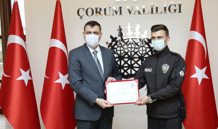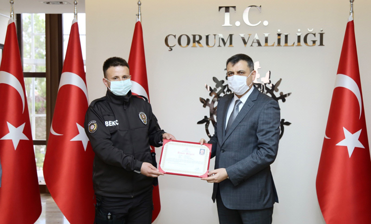 Destek isteyen polislerin yardımına taksi tutarak giden bekçilere başarı belgesi verildi.