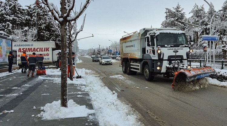 Çorum’da gece saatlerde başlayan kar yağışı ile birlikte Çorum Belediyesi ekipleri de sahada çalışmalara başladı. Trafiğin aksamaması için şehrin tüm ana arterlerini temizleyen Çorum Belediyesi ekipleri, ulaşımın düzenli bir şekilde sağlanması için yoğun çaba sarf etti. Kar temizliği için tüm ekiplerle sahaya çıkan Çorum Belediyesi yol ve kaldırımlardaki buzlanmaya karşı aralıksız çalıştı.