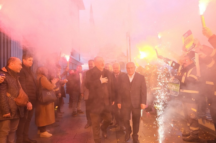Belediye Başkanı Dr. Halil İbrahim Aşgın, aday tanıtım toplantısının ardından ilk mesai gününde Belediye çalışanlarının katıldığı coşkulu törenle karşılandı. Başkan Aşgın, tüm mesai arkadaşlarıyla yeni dönem için de tevazu, samimiyet ve gayretle 5 yıl daha Çorum için aşkla çalışacaklarının altını çizdi. 31 Mart seçimlerinde Cumhur İttifakının Çorum Belediye Başkan Adayı olarak açıklanan Dr. Halil İbrahim Aşgın, belediye çalışanları tarafından coşkuyla karşılandı. Hak-İş’e bağlı Hizmet İş Sendikası ve Memur-Sen’e bağlı Bem-Bir-Sen tarafından sabah mesai saati öncesinde belediye binası önünde sürpriz bir karşılama töreni düzenlendi. Belediye binası önünde Başkan Aşgın’ı meşalelerle karşılayan belediye çalışanları ellerindeki pankartlarla destek mesajları verdi.