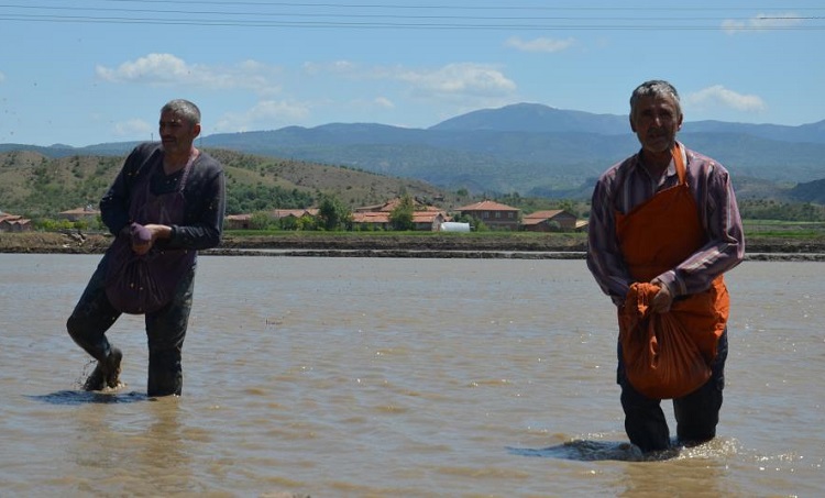 Çeltik üretiminin çok zor ve zahmetli bir şekilde gerçekleştiğini anlatan Sarı, “Mayıs içerisinde tarlalar hazırlanıyor. Hazırlık içinde belirli aşamalar var. Tarlaların tesviyesinin çok iyi olması lazım. Eğimin ve suyun tarlanın her tarafında eşit olması gerekiyor. Homojenliğin sağlanması gerekiyor. Sürümü ve temizliği yapıldıktan sonra tarlalara su veriliyor. Tarlalardaki suyun tapanla tesviyesi yapılıyor. Arazisi küçük olan çiftçilerimiz ekimi elleriyle yaparken büyük parsellerde ise makine ile ekim yapılıyor” ifadelerini kullandı.