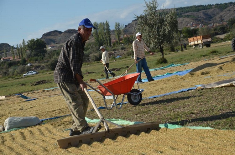 Çorum’un Osmancık ilçesinde yılda 25-30 bin ton üretilen ve binlerce ailenin de geçim kaynağını oluşturan çeltiğin hasadına başlandı. Ülkedeki pirinç ihtiyacının yüzde 5’ini karşılayan ‘Osmancık97’ pirinci, Osmancık’ta yaşayan ailelerin önemli gelir kaynaklarından birisini oluşturuyor. Pirincin ‘pırlanta’ ya da ‘beyaz altın’ olarak adlandırıldığı Osmancık’ta çeltik hasadı sonbaharın gelmesi ile başladı. Mayıs ayında ekinde ekilen ve olgunluğunu yaklaşık 5 ayda tamamlayan çeltik, biçerdöverlerle hasat edilmeye başlandı. Hasat edilen çeltikler daha sonra kurutulma işleminden geçirilecek. Son aşamada ise pirinç fabrikalarına satılan çeltikler, kabuklarından ve kepeklerinden ayrılıp satışa hazır hale getirilecek. Rekoltenin yüksek olması sebebi ile üreticisinin yüzünü güldüren Osmancık pirincinin Çorum’da 8 TL, İstanbul ve Ankara gibi büyük şehirlerde ise yaklaşık 14 TL’den satıldığı belirtildi.