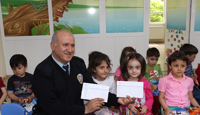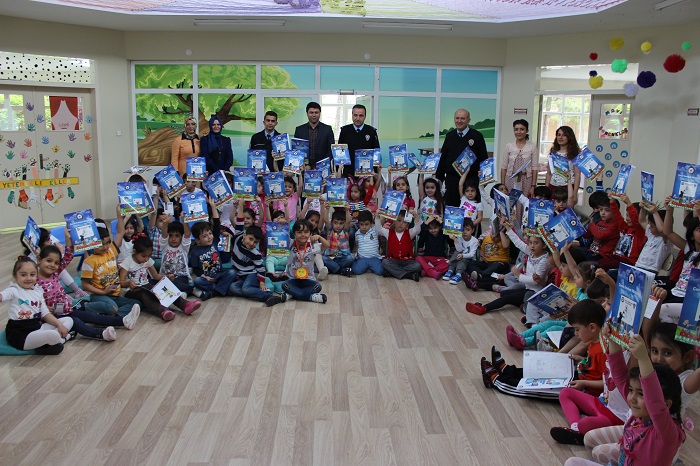 Anaokullarına yönelik olan projenin “Gülen Gözler” faaliyet konusu kapsamında anaokullarına yapılan ziyaret Toplum Destekli Polislik Büro amir ve memurlarının katılımı ile gerçekleşti. 528 adet boyama kitabının dağıtıldığı etkinlikte minik öğrencilere Toplum Destekli Polislerin yaptıkları iş hakkında eğitici bilgiler verildi.