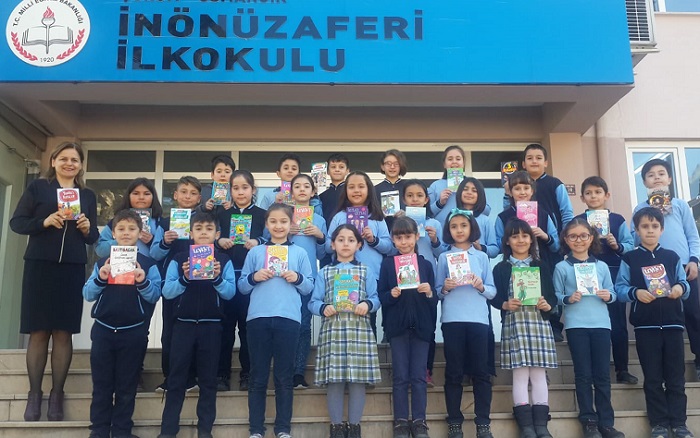 Son Güncelleme: 27 Mart 2019 08:39 Çorum merkez Fatih Sultan Mehmet İlkokulu 4/I sınıfı öğrencileri ve Sınıf Öğretmeni Güldane Alparslan, “BİR KİTAP BİN UMUT” adlı proje kapsamında okulda topladıkları kitapları ilçelerdeki okullara yolladı. Öğrenciler sayesinde Mecitözü Cumhuriyet İlkokulu, Alaca Mehmet Akif Ersoy İlkokulu, Osmancık İnönü Zaferi İlkokulu’nda 3 ayrı sınıfa kitaplık oluşturuldu.