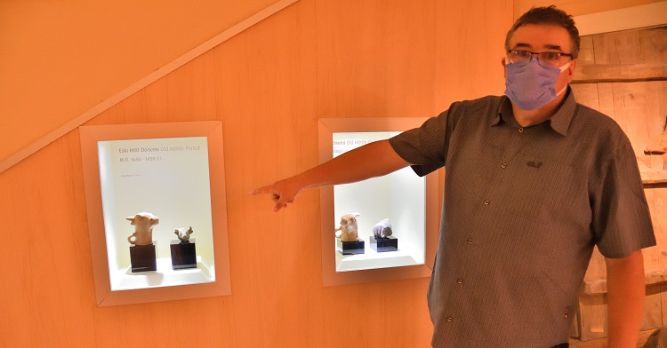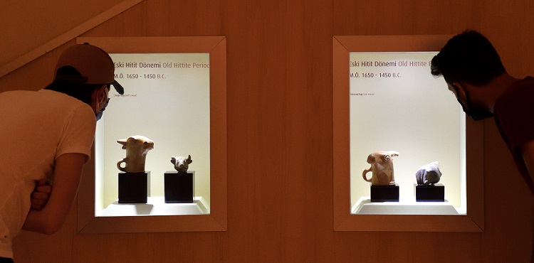 Kültür ve Turizm Bakanlığı’nın izniyle Alman Arkeoloji Enstitüsünce Hattuşa Ören Yeri’nde yürütülen kazı çalışmalarında elde edilen boğa, keçi ve yumruk şeklindeki içme kapları, Boğazkale Müzesi’nde sergileniyor. Müzede sergilenen 3 bin 600 yıllık yumruk biçimli içme kabı farklı görüntüsüyle ilgi çekiyor. Boğazköy Hattuşa Kazı Başkanı Prof. Dr. Andreas Schachner, AA muhabirine, 6 yıl önceki kazı çalışmalarında boğa, keçi ve yumruk şeklindeki içme kaplarını ortaya çıkardıklarını aktardı. Üç içme kabının da arkeolojik açıdan önemli olduğunu, yumruk biçimli kabın ise hem kullanılan malzeme, hem de binlerce yıl toprağın altında bozulmadan kalabilmesinden dolayı “ünik eser” olarak tanımlandığına işaret eden Schachner, “Kazı çalışmalarında boğa, keçi ve yumruk şeklinde 3 çok önemli eser bulduk. Bunlardan en ilginç olanı ise yumruk şeklindeki içme kabı. Çünkü yapıldığı malzeme çok nadir, gri seramiktir.” dedi.