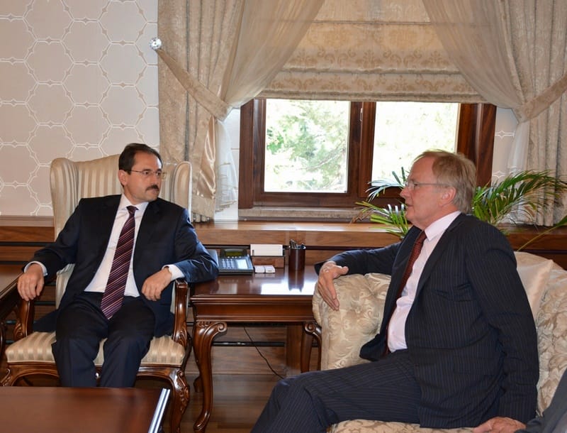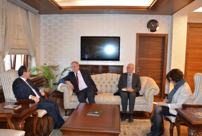 Almanya’nın Türkiye Büyükelçiliği ile Çorum Ticaret ve Sanayi Odası (TSO) tarafından organize edilen “Türk-Alman Ekonomi Günü” etkinliği kapsamında ilimizde bulunan Almanya’nın Ankara Büyükelçisi Eberhard Pohl, Vali Sabri Başköy’ü makamında ziyaret etti.