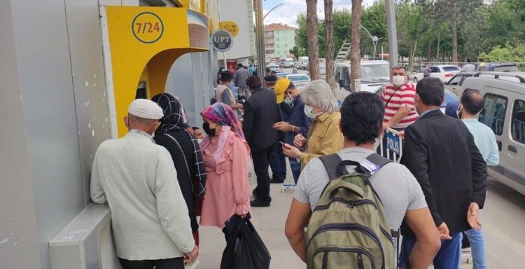Çorum’da tam kapanma sonrası cadde ve meydanlarda dikkat çeken yoğunluk oluştu. Türkiye genelinde korona virüs vaka sayılarının artmasıyla beraber 29 Nisan’dan itibaren tam kapanma sürecine geçilmişti. Bugünden itibaren kontrollü normalleşmeye geçilmesiyle sokağa çıkma kısıtlaması da hafta içi belli saatlerde yeniden kaldırıldı. Tam kapanma sonrasının ilk gününde Çorum’un Sungurlu ilçesinde ana caddelerde oluşan yoğunluk gözlerden kaçmadı. Havanın da ısınmasıyla birlikte vatandaşlar sokağa akın etti. Vatandaşlar bankalar önünde uzun kuyruklar oluşturdu. Zaman zaman metrelerce olan kuyrukta vatandaşların sosyal mesafe kurallarını ise dikkat etmediği gözlendi. Öte yandan tam kapanma sürecinin sona ermesiyle birlikte ilçedeki esnaflarda kepenklerini açarak tekrar işbaşı yaptılar. (İHA)