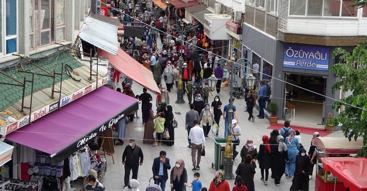 Çorum’da tam kapanma sonrası cadde ve meydanlarda dikkat çeken yoğunluk oluştu.
