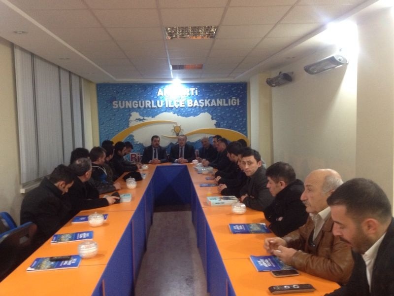 Ak Parti Sungurlu İlçe Teşkilatı’nı ziyaret eden Timur Cevher’i ilçe Başkanı İlyas Özkan ve yönetim kurulu üyeleri karşıladı. İlçe başkanı İlyas Özkan, Timur Cevher’e hayırlı olsun temennisinde bulunarak teşkilatların yakından tanıdığı Cevher’in hem eğitimci hemde iş dünyasının içinden birisi olarak milletvekili adayı olmasından duyduğu memnuniyeti dile getirdi.