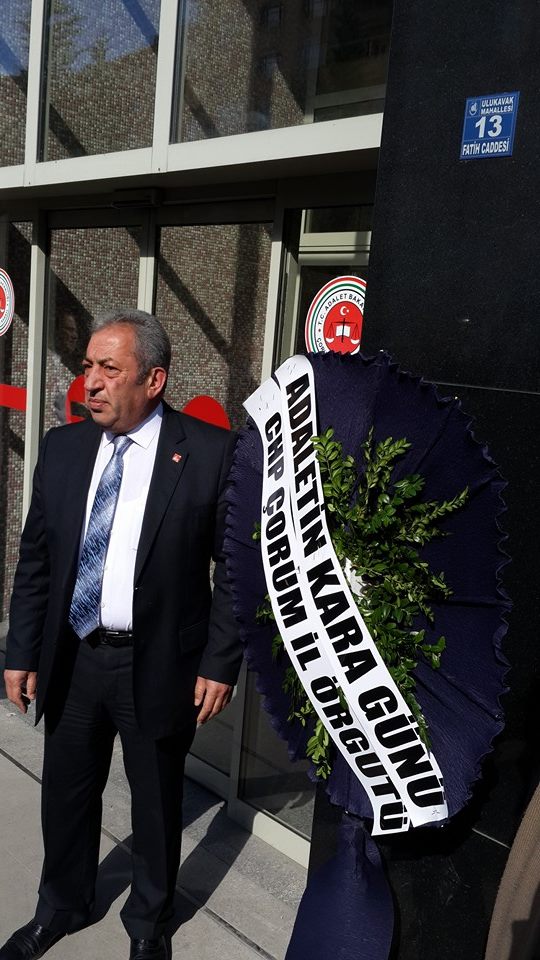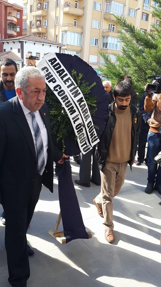 CHP, 17 ve 25 Aralık yolsuzluk operasyonlarının sıfırlanmasını ’Adaletin Kara Günü’ ilan ederken tüm yurtta olduğu gibi Çorum’da da Adliye Sarayı’na üzerinde ’Adaletin Kara Günü’ yazılı siyah çelenk bıraktı.