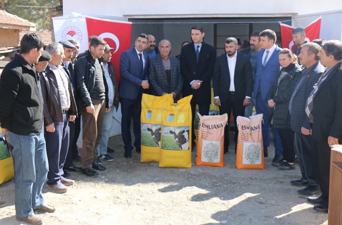 Son Güncelleme: 11 Şubat 2021 11:06 Çorum Ortaköy ilçesinde hayvancılığın önemli girdilerinden olan kaba yem ihtiyacının karşılanması yönelik olarak yem bitkisi üretiminin arttırılmasına amacıyla İl Özel İdaresi tarafından finanse edilerek alınan tohumlar düzenlenen törenle çiftçilere dağıtıldı. Törene Ortaköy Kaymakamı Murat Acar, İl Tarım ve Orman Müdür Yardımcısı Erdem Kolabaş, İl Genel Meclisi üyeleri ve çiftçiler katıldı. Törende konuşan Ortaköy Kaymakamı Acar, “İlçenin tek gelir kaynağının tarım ve hayvancılık olduğunu dile getirerek, bu konularda yapılacak yatırım ve destekler ile İlçe halkımızın gelir kaynaklarının arttırılması önceliğimizdir” diyerek, üreticilerin üretimin her aşamasında yanında olmaya çalıştıklarını dile getirdi. Hayvancılıkta kaba yem ihtiyacının karşılanması amacıyla sulu arazilerde yonca ve kuru arazilerde korunga yetiştirilmesi planlanarak, İlçe Tarım ve Orman Müdürlüğü tarafından proje haline getirilmiş ve İl Özel İdaresi tarafından desteklenerek üreticilere 600 kg yonca ve 1000 kg korunga tohumu alımı gerçekleştirildiğini anlatan Kaymakam Acar, “Hedefimiz; Ortaköy’ de kırsal alanda yaşayan üreticilerimizin gelir düzeyini artırmaktır. Bu amaçla üreticilerimizi desteklemek için tohum fidanı dağıtımı gerçekleştiriyoruz” diyerek, üreticilere yeni üretim sezonunun bereketli geçmesi dilekleriyle sözlerini sonlandırdı. Konuyla ilgili olarak üreticilere bilgi veren İlçe Tarım ve Orman Müdürü Gazi Erdemirci ise “30.000 TL maliyetle alınan tohumlar bölgeye uygun ve verimli çeşitlerden seçilerek tercih edilmiştir. Alınan 1600 Kg tohum ile 150 dekar yonca ve 100 dekar alanda korunga üretimi yapılabilecektir. Bu proje ile ilçede üretimi az olan yem bitkileri üretimi arttırılmış olacak, aynı zamanda üretimi yapılan ürün desenini çeşitlendirerek nadas alanlarının azaltılması da sağlanmış olacaktır” dedi. Üreticilerin ilgisinin memnuniyet verici olduğunu söyleyen Erdemirci 2019 yılının bereketli ve bol kazançlı geçmesi temennisinde bulundu. Ardından yonca ve korunga tohumları üreticilere dağıtıldı.