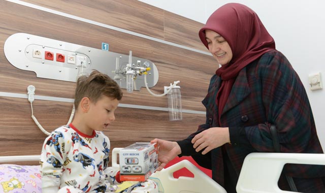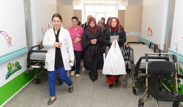 Son Güncelleme: 22 Kasım 2019 17:18 Çorum Belediyesi İkbal Kadın Kültür Merkezi, 20 Kasım Dünya Çocuk Hakları günü dolayısıyla Hitit Üniversitesi Erol Olçok Eğitim Araştırma Hastanesinde tedavi gören çocuklara moral ziyareti yaptı. Ziyarete Çorum Belediye Başkanı Dr. Halil İbrahim Aşgın’ın eşi Feyza Aşgın, düzenlenen programda hastanede tedavi gören çocuklara kadın kültür ve sanat merkezi kursiyerleri tarafından örülen örgü bebekler hediye etti. Bir çocuğun gülümsemesiyle tüm dünyanın değişeceğini ifade eden Feyza Aşgın,”Mazlum coğrafyada, savaşın içinde bulunan çocuklarında, Amerika’daki, Avrupa’daki çocuklar gibi gülmeye hakkı var. Çocukların mutlu olmadığı bir dünyada huzur barış ve sükunet asla olmayacak. Bir gün değil her gün çocuklarımızın yüzlerini güldürmek için çaba göstermeliyiz” dedi.