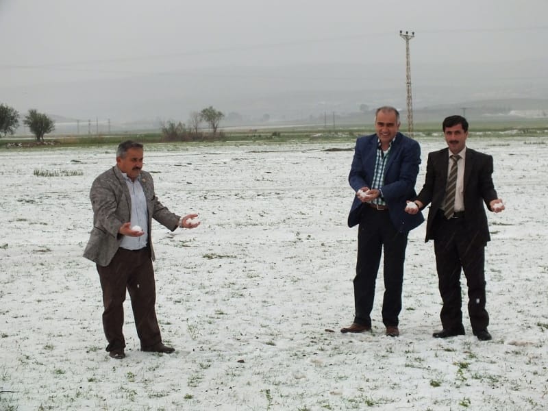 Özellikle ova köylerinde etkili olan ve yaklaşık bir saat süren ceviz büyüklüğündeki dolu yağışının buğdayın yanı sıra soğan ve benzeri ürünlere ve meyvelere de ciddi zarar verdiğine anlatan Mehmet Sayan, Çorum çiftçisi için bu yılın çok zorlu geçeceğini, devletten çiftçiye yardımcı olmasını beklediklerini sözlerine ekledi.
