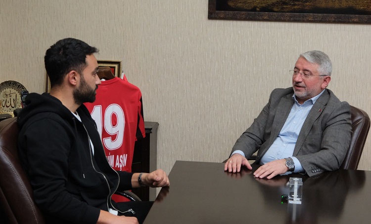 Trendyol 1. Lig’de Play-Off mücadelesi veren Ahlatcı Çorum Futbol Kulübü kaptanı Ferhat Yazgan, Belediye Başkanı Dr. Halil İbrahim Aşgın’ı makamında ziyaret etti. Belediye Başkanı Dr. Halil İbrahim Aşgın Çorum Futbol Kulübünün dün olduğu gibi bugün de yarın da yanında ve destekçisi olacağını belirtti. Şehrin Süper Lig’i hak ettiğini belirten Başkan Aşgın “Teknik Direktörümüz Tuncay Şanlı takıma bir hedef koydu. Önce Play-Off ardından da süper lig. Takımımızda, şehrimizde, yönetimimizde Süper Lig’i hak ediyor. Sizleri canı gönülden tebrik ediyorum. O yıl bu yıl diyelim. Hititlerin başkentine Süper Lig çok yakışır. Şehrimiz kenetlendi, özellikle gençlerimiz büyük bir heyecan duyuyorlar. Biz de sizlere destek olmaya devam edeceğiz. Yapmış olduğunuz kampanya çok yerinde bir kampanya olmuş. Şehrimizden de bir teveccüh olacağını düşünüyorum. Olması da gerekiyor. Futbolcularımız tüm güçleriyle mücadele ediyorlar. Yöneticilerimiz şehre yük olmadan, takımı daha ileriye taşımak için gayret gösteriyor. Yönetim tarafından herkesin bir şekilde destek verebileceği bir kampanya oluşturulmuş. Bu desteği vermeye tüm iş insanlarımızı, esnaflarımızı davet ediyorum. Şehrimizin kenetlenmesi adına çok kıymetli bir kampanya. Biz bu setlerden alarak kampanyanıza destek vereceğiz ve taraftarlarımıza hediye edeceğiz” dedi.