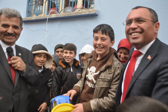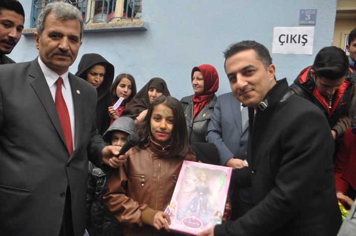 Yaklaşık olarak bin çocuğu sevindirmek amacıyla düzenlenen şölende çocuklara ilk hediyelerini MHP Milletvekili Adayları Aybüke Topçubaşı Ekici, Sami Çam ve MHP İl Başkanı Bekir Çetin verdi. Oyuncak dağıtımına mahallede yaşayan mülteci çocukları da katılırken oyuncak alacak çocuklar aynı anda içeriye girip hediyesini almak isteyince izdiham yaşandı. Yağmur Damlası Yardımlaşma Derneği Başkanı Ahmet Sözüdoğru yaptığı açıklamada, 23 Nisan’da çocukları sevindirmek için gerçekleştirdikleri bu organizasyonda hayırseverler tarafından bağışlanan oyuncakları çocuklara dağıttıklarını söyledi.