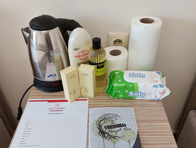 Son Güncelleme: 20 Nisan 2020 18:38 Umre ziyareti için kutsal topraklara gidenler ile bu ülkede çalışan işçilerden oluşan 314 Türk vatandaşı, Kovid-19 salgını nedeniyle Suudi Arabistan’daki 21 günlük karantinanın ardından Cumhurbaşkanı Yardımcısı Fuat Oktay’ın koordinasyonunda, Dışişleri, İçişleri, Sağlık, Ulaştırma ve Altyapı Bakanlıklarının yürüttüğü ortak çalışmayla Türk Hava Yolları’na ait uçakla 14 Nisan’da Samsun’a getirildi. Samsun’dan otobüslerle Çorum’a taşınan 314 kişi, Yüksek Öğrenim Kredi ve Yurtlar Kurumuna (KYK) bağlı İskilipli Atıf Hoca Yurdu’nda karantinaya alındı. İhtiyaçları Çorum Valiliği, İl Sağlık Müdürlüğü, AFAD, Gençlik ve Spor İl Müdürlüğü ile Türk Kızılay tarafından karşılanan vatandaşlar, sık sık camlara çıkıp birbirleriyle ve personelle sohbet edip karantina günlerini eğlenceli hale getiriyor. Yurtta kalanlara, Çorum Belediyesi tarafından leblebi ve kitap hediye edildi. Ailesiyle yurtta kalan Hatice Kübra Aysabar’ın 8’inci doğum günü de görevlilerin yaptığı sürpriz organizasyonla pasta kesilerek kutlandı.