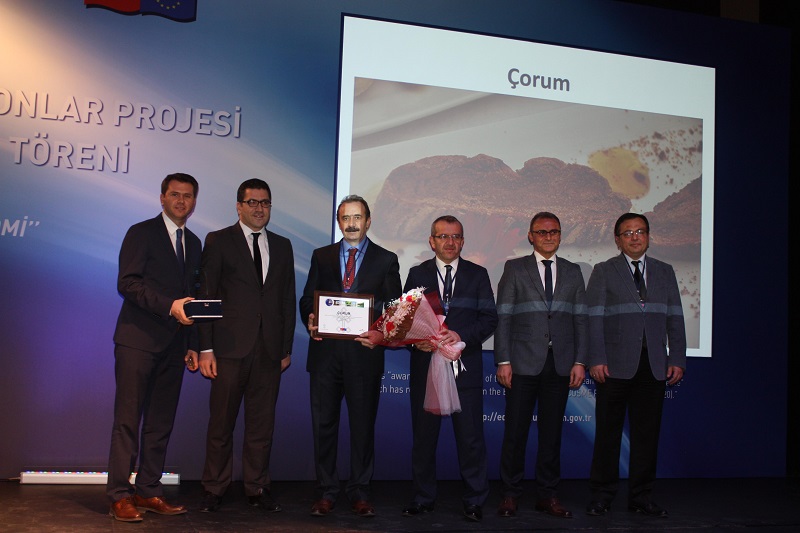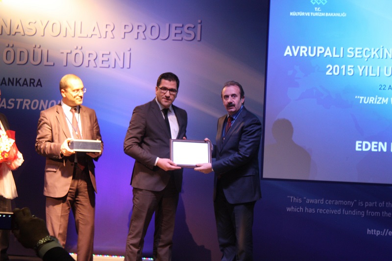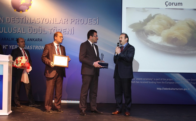 Ankara’da Cermodern Sanat Merkezi’nde düzenlenen etkinlikte, 2015 yılı “Turizm ve Yerel Gastronomi” destinasyonu seçilen Gaziantep ile 4 finalist ödül aldı. Programa Çorum, Çanakkale, Kayseri, İzmir ve Gaziantep illerinden destinasyon temsilcileri katıldı. Ödül töreninden Çorum Milletvekili Lütfiye İlksen Ceritoğlu Kurt, 53 ilden gelen ilk 5’e giren Çorum ilinin proje ekibini ve diğer illerden gelen proje ekiplerini tebrik ederek teşekkür etti. Kültür ve Turizm Bakanlığı Dış İlişkiler ve Avrupa Birliği Koordinasyon Dairesi Başkanı Sedat Gönüllüoğlu, etkinlikte, Avrupalı Seçkin Destinasyonlar (EDEN) projesi hakkında bilgi verdi. Bu seneki “Turizm ve Yerel Gastronomi”ye 58 tane başvuru yapıldığını aktaran Gönüllüoğlu, “Bunlardan 5 tane finalistimiz var. Ben açıkçası kendi aralarında bir sıralama yapmıyorum. Kazanan tüm finalistleri tekrar tebrik ediyorum” dedi. Avrupalı Seçkin Destinasyonlar (EDEN) projesinde finalist olan Çorum ili adına ödülü Çorum İl Özel İdaresi Genel Sekreteri Ömer Arslan aldı.