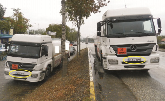 Emniyete çekilen tankerlerin ikisinin de aynı plakaya sahip olması polisi bile şaşırtırken sürücüler gözaltına alındı.