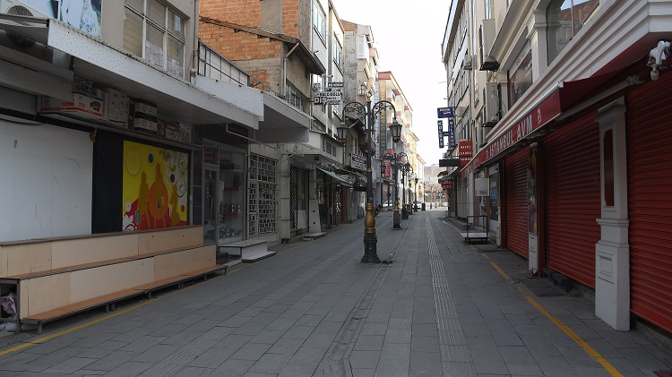 Son Güncelleme: 27 Aralık 2020 15:10 İçişleri Bakanlığının yeni tip koronavirüs (Kovid-19) ile mücadele genelgesi kapsamında hafta sonu uygulanan sokağa çıkma kısıtlaması nedeniyle Çorum’da sessizlik hakim oldu. Vatandaşların genel olarak kısıtlamaya uyduğunun görüldüğü kentte cadde ve meydanlar boş kaldı. Hafta içi araç ve yaya yoğunluğu yaşanan Gazi, İnönü ve Bahabey caddeleri boş kalırken, Hürriyet Meydanı da ıssızlaştı. Kısıtlamadan muaf tutulan esnafın kepenk açtığı kent, sessiz bir hafta sonu geçiriyor. Kısıtlama kapsamında polis ekiplerinin denetimleri sürüyor. (AA)