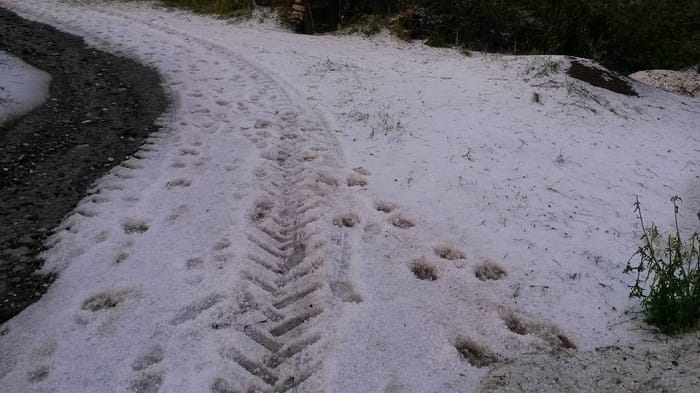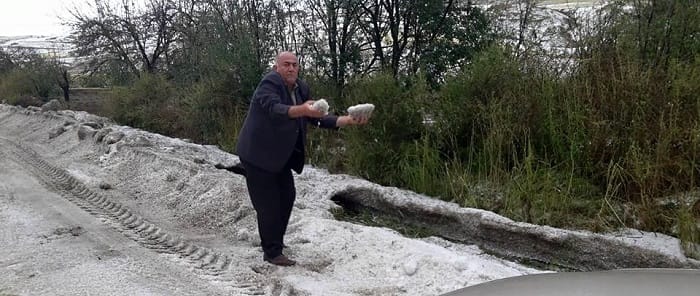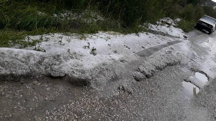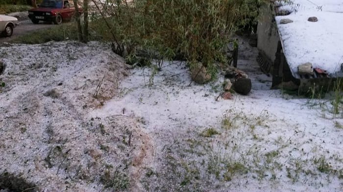 Çatılardan akan sularla bazı evlerin içi su ile dolarken köy ve arazi dolu yağışı nedeniyle bembeyaz bir örtüye büründü. Yağan dolunun iriliği görenleri şaşırtırken fotoğraflarda görülen dolular yağıştan yaklaşık 1 saat sonra çekildi.