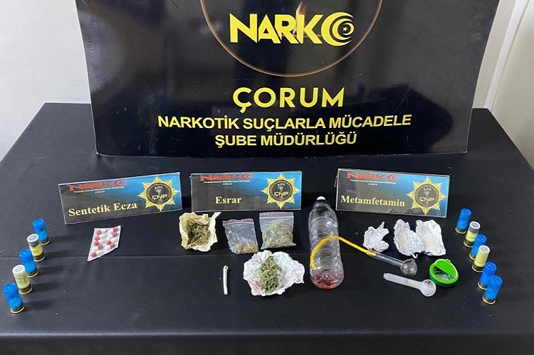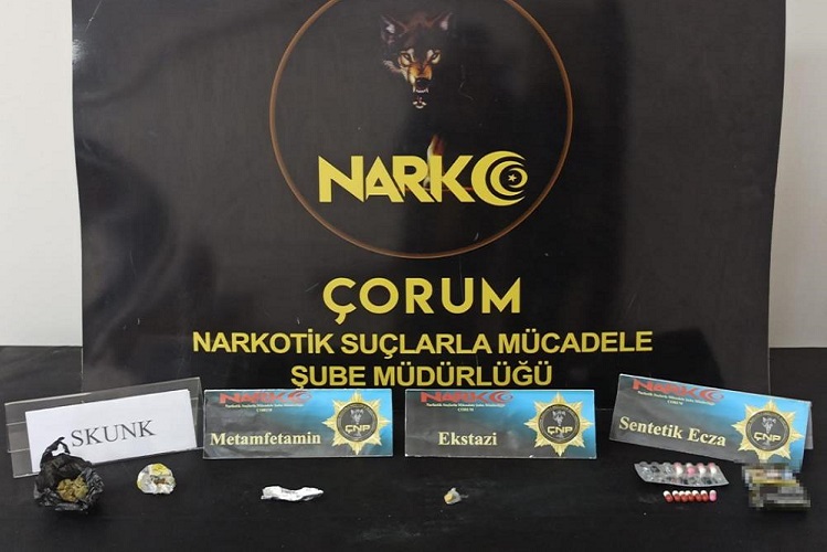 Emniyet Müdürlüğü Narkotik Suçlarla Mücadele Şube Müdürlüğü ekiplerince il merkezi, Sungurlu ve Osmancık ilçelerinde uyuşturucu madde ticaretinin önlenmesine yönelik yapılan çalışmalar çerçevesinde bin 523 adet sentetik ecza, 29,39 gram esrar maddesi, 5,83 gram skunk maddesi, 139,20 gram metamfetamin maddesi, 143 adet ekstazi hap, bin 690 TL suç geliri olduğu değerlendiren para ve 31 adet uyuşturucu kullanma aparatı ele geçirildi. Operasyonda gözaltına alınan 11 şüpheli şahsa “Uyuşturucu Madde Ticareti” suçundan işlem yapılırken, haklarında düzenlenen soruşturma evrakıyla birlikte adli makamlara sevk edilen zanlılar tutuklanarak L Tipi Kapalı Cezaevine teslim edildi. Emniyet Müdürlüğü’nden yapılan açıklama da, “Ülkemizin geleceği, yarınlarımızın teminatı gençlerimizi zehirleme niyetindeki şahıslar ve örgütlerle mücadelemiz aralıksız devam edecektir” ifadelerine yer verildi.