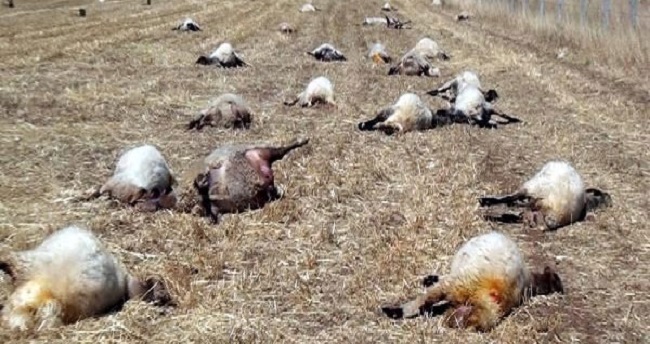 Edinilen bilgiye göre; Osmancık ilçesi Akören köyü eski kum ocağı mevkiinde arazide otlayan M.Ç’ye ait 21 tane koyun Tarım İl Müdürlüğü ekiplerince arazide toplu olarak telef olduklarını gördüler. Osmancık ilçe Tarım Müdürlüğü tarafı yetkililerince numune alınarak Ankara’ya incelenmek üzere laboratuvara gönderildi. Telef olan 21 tane koyun ise aynı mevkide toprağa gömüldü.