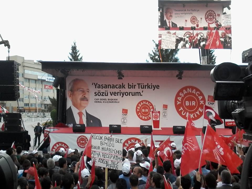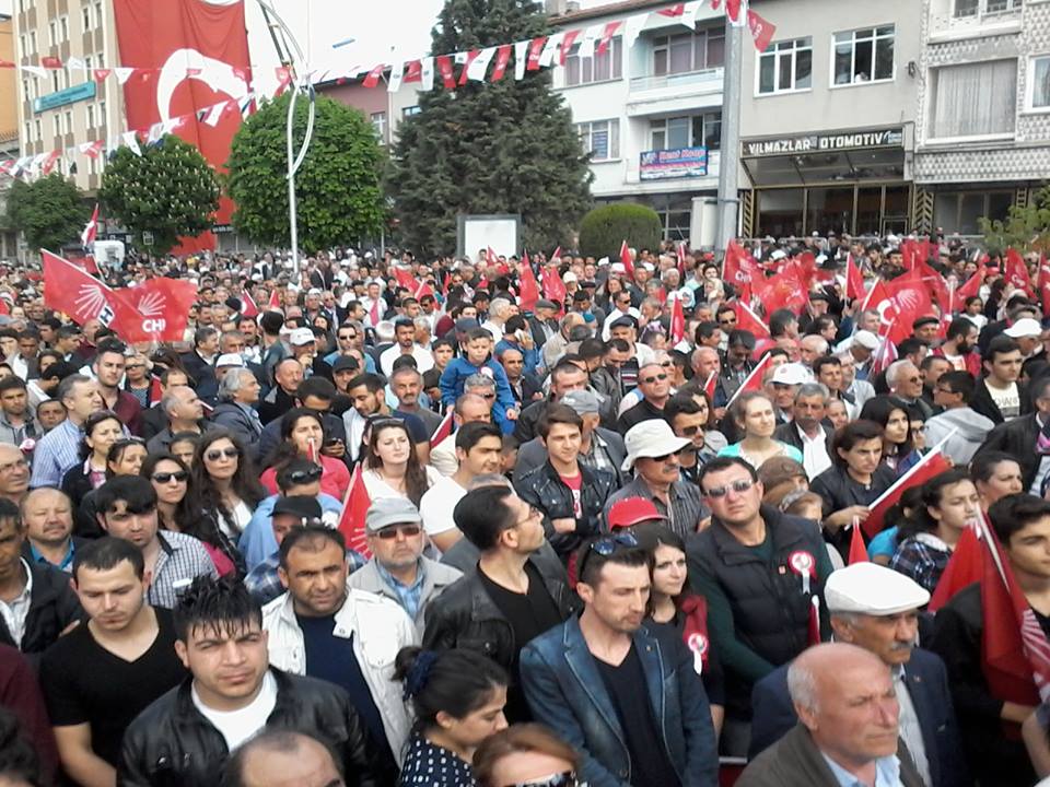 Abide Meydanında yaklaşık 5 bin kişinin katıldığı mitingde partililer sık sık “Başbakan Kemal” sloganları attı. Kılıçdaroğlu, miting öncesi gecikmeden dolayı özür diledi. Zeki Alasya’nın cenazesine katıldığını ifade eden Kemal Kılıçdaroğlu, “Allah rahmet eylesin, cenaze törenine katıldığım için geciktim, kusura bakmayın” dedi. Kılıçdaroğlu, Dodurga Maden Ocağının kapatılmasıyla ilgili olarak da hükümeti eleştirdi.