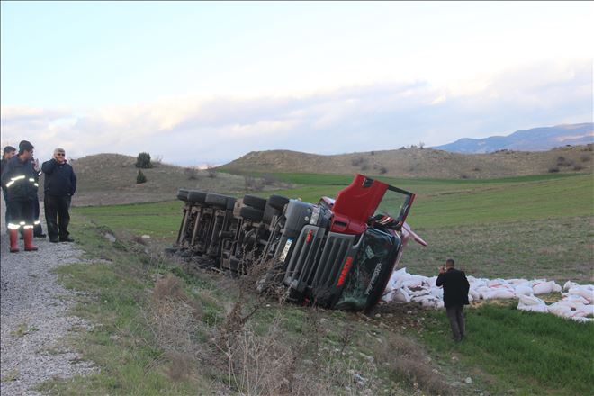 Olay Osmancık-Dodurga karayolu Kumbaba köyü mevkisi 8. kilometrede meydana geldi. Dodurga Tarım Kredi Kooperatifi´ne çuvallanmış çeltik tohumu götüren 36 yaşındaki Murat Akça yönetimindeki 18 DT 015 plakalı TIR sürücüsü yolda direksiyon hakimiyetini kaybetmesi sonucu şarampole devrildi. Baygınlık geçirerek araç içerisinde sıkışan TIR sürücüsü Akça yoldan geçen araç sürücüleri tarafından 112 ye haber vermelerinin ardından güçlükle araç içerisinden dışarı çıkarıldı. TIR sürücüsü Akça olay yerine çağrılan ambulansla Çorum Eğitim Araştırma Hastanesi´ne kaldırılarak tedavi altına alındı. Şarampole devrilen tır iki vinç yardımıyla olay yerinde kaldırılabildi. Jandarma olayla ilgili soruşturma başlattı