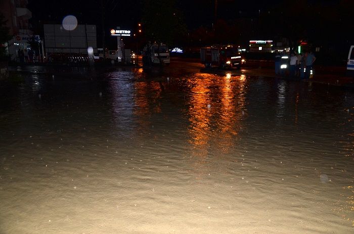 Akşam saatlerinde Gecek Köyü çevresinde dolu olarak başlayan yağış gecenin ilerleyen saatlerinde sağanak yağışa dönüşünce sel meydana geldi.