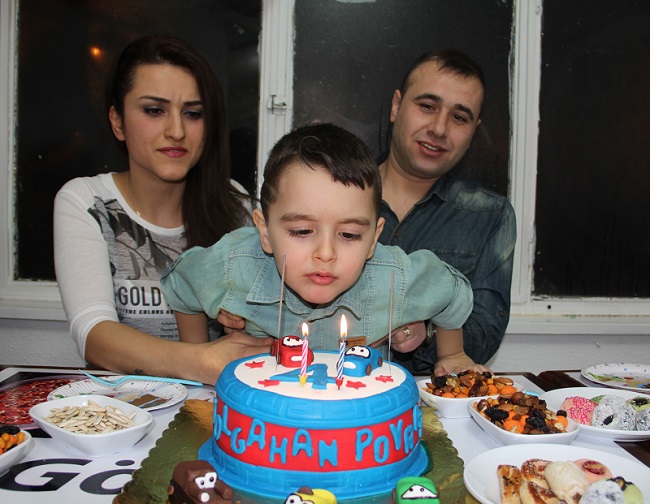 Çorum’da yaşayan, Volkan ve Bilgehan Türkmen çiftinin oğulları Tolgahan Poyraz, 29 Şubat 2012 tarihinde dünyaya geldi. 29 Şubat’ın 4 yılda bir takvimde yerini alması sebebiyle 4 yıl sonra ilk doğum gününü kutlayan Tolgahan Poyraz için ailesi tarafından doğum günü partisi düzenlendi. Minik Tolgahan Poyraz’ı mutlu gününde ailesinin yanı sıra yakınları da yalnız bırakmadı. Kendisi için hazırlanan yaş günü pastasındaki mumları üfleyerek doğum gününü kutlayan Tolgahan Poyraz, heyecanını yakınlarıyla paylaştı. Oğlunun ilk doğum gününü kutlamanın heyecanını yaşadıklarını dile getiren baba Türkmen, “Poyraz’ın 4 yılda bir resmi doğum günü var. Tabii ki böyle olması bir ayrıcalık. Geleceği için her şeyi yapıyoruz” dedi. Bu konuda şanslı olduklarını belirten anne Türkmen ise çok heyecanlı olduğunu belirterek, söyleyecek bir şey bulamadığını dile getirdi. Minik Poyraz da doğum günü olduğu için mutlu olduğunu kaydetti. İHA