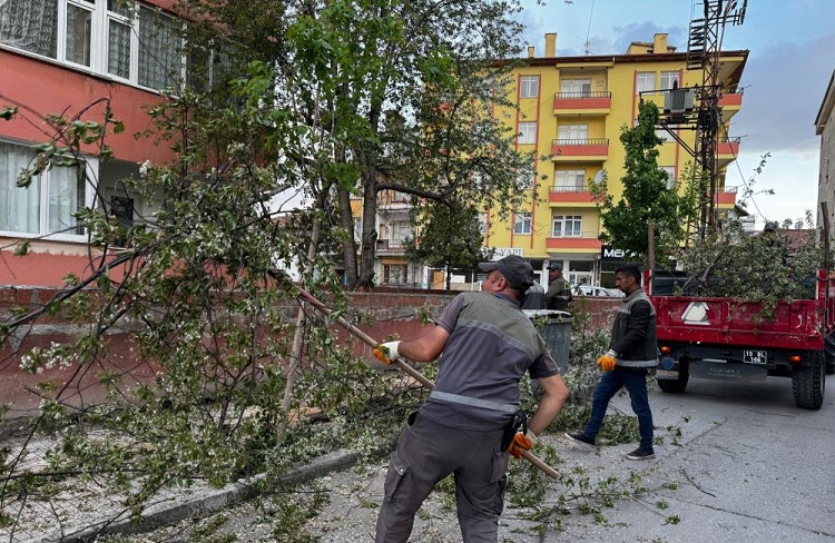 Çorum’da öğle saatlerinden itibaren etkili olan fırtına kentte çok sayıda ağacın devrilmesine, çatılar uçmasına elektrik tellerinin kopmasına neden oldu. Fırtına sonrası vatandaşlardan gelen ihbarları değerlendiren belediye ekipleri, oluşan zararları gidermek için seferber oldu. Kentte yaşanan şiddetli fırtına sırasında ağaç devrilmesi olaylarıyla ilgili 25 ihbar alan belediyesi ekipleri anında müdahale etti. Parklar ve yol kenarlarında fırtına nedeniyle devrilen ağaçlar belediye ekipleri tarafından kaldırıldı.