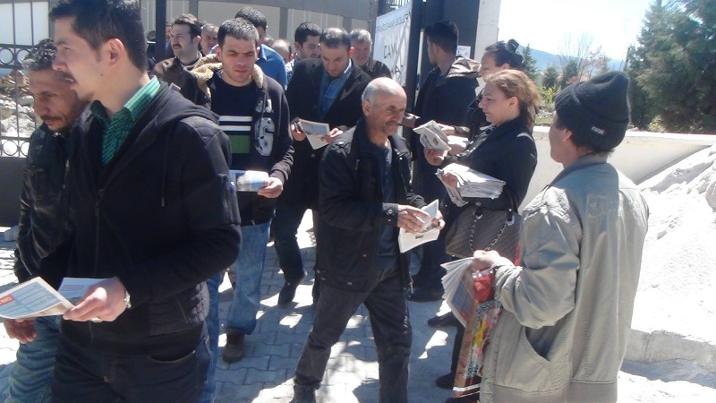 hdp çorum bildiri dağıtımı (4)Halkların Demokratik Partisi Çorum Milletvekili Adayı Meliha Üşüdür, yıllardır verilen mücadeleler sonucu 1 Mayıs’ın Türkiye’de “Emek ve Dayanışma “Günü” adıyla resmi tatil olarak kanunlaştığını belirterek, “Kazanılmış hakkımızın gasp edilmesini kabul etmeyelim. 1 Mayıs’ta, 1 Mayıs alanında olalım. İşsizliğe, yoksulluğa ve baskılara karşı 1 Mayıs’ta alanlara çıkma zamanıdır. İş, ekmek, özgürlük ve demokrasi için birleşelim; 1 Mayıs’ı emekçi seline dönüştürelim” dedi.